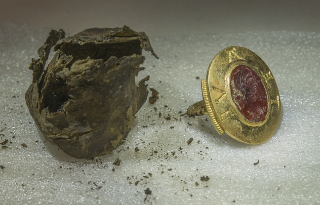 - un anneau sigillaire – type d’anneau généralement utilisé pour sceller les lettres – en or avec une intaille antique représentant un dieu.