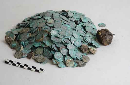 C’est alors qu’une étudiante en master a aperçu une pièce, premier élément d’un trésor qui, par chance, n’a pas été touché par la pelleteuse. Anne Flammin, ingénieure du CNRS et codirectrice des fouilles avec Anne Baud rapporte que le trésor « a été placé sous un sol le long d’un mur, lesquels ont depuis disparu. Nous avons immédiatement compris qu’il s’agissait d’un trésor monétaire ».