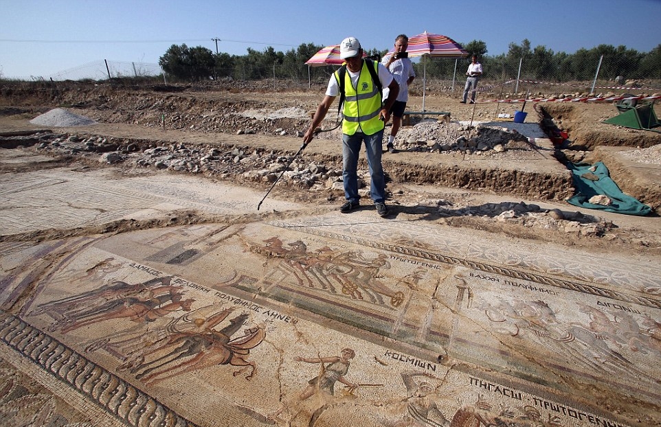 Le village d’Akaki se trouvait dans l’antiquité à une quinzaine de kilomètres de deux agglomérations antiques : Tamassos et Ledra (aujourd’hui Nicosie). Déjà dans les années 30, un fermier avait mis à jour des fragments de mosaïque sur le site. Mais de véritables fouilles archéologiques n’ont commencé qu’en 2013, sous la direction de Fryni Hadjichristofi. En 2016, une mosaïque remarquable est découverte sous le tracé d’une ancienne voie de chemin de fer. Recouverte pour la protéger, elle est en cours de dégagement depuis un mois. Les travaux de restauration devraient s’étaler sur une longue période et la mosaïque ne sera visible au public que dans plusieurs années.