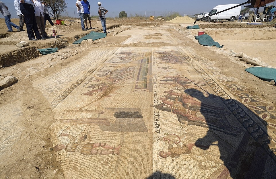 Rare mosaïque romaine représentant une course de char découverte à Chypre