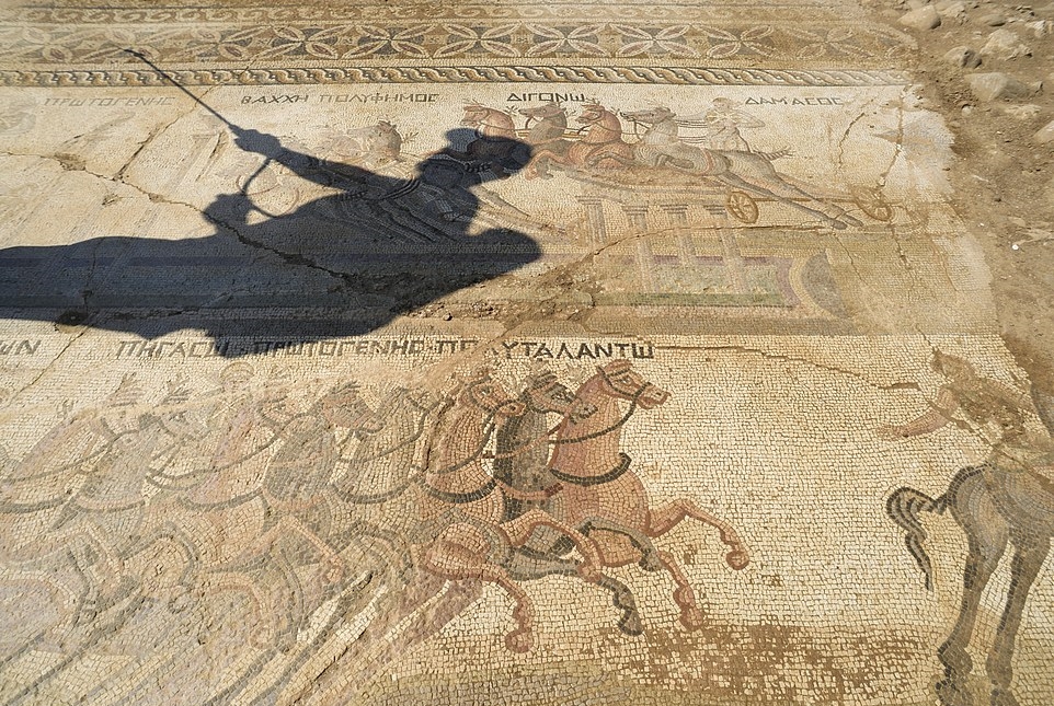 Remontant au IVe siècle, elle devait constituer la pièce maîtresse de la villa d’un personnage fortuné de l’époque romaine. Mesurant 11 mètres sur 4, elle représente une course de char, un divertissement populaire à l’époque romaine, agrémentée d’inscriptions en grec, désignant peut-être les différentes factions en lice. Si la représentation de chevaux ou de chars isolés n’est pas rare, celle d’un hippodrome et de courses de char est beaucoup plus rare. Unique à Chypre, on n’en connaît que neuf exemplaires dans tout le monde romain.